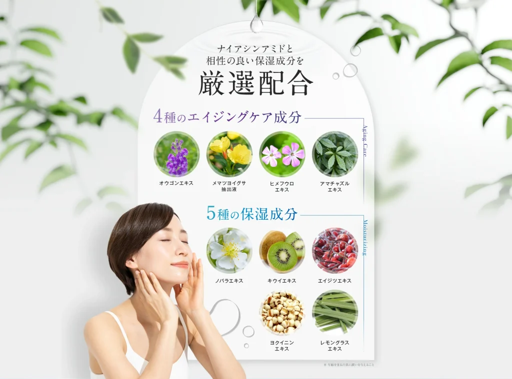 お肌の透明感をサポート成分としてナイアシンアミドが配合されています!