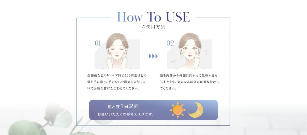 朝は寝ている間に失われた水分を補給して、日中の乾燥や紫外線対策の準備。夜は肌のターンオーバーや修復のためにしっかり保湿。