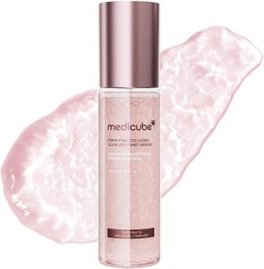 韓国スキンケアブランドのメディキューブから2025年9月5日に発売されたPDRN1ピンクゼリーセラムミスト。上の画像に書いてありますが、コラーゲンゼリーテクスチャーにPDRNセラムを閉じ込めて水分を補給しながら、肌表面に保湿膜を形成して水分の蒸発を防止する効果があります!